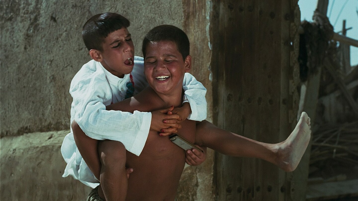 Pur di suonare quello strumento meraviglioso venuto dall’Oriente, l’armonica a bocca, che lo manda in estasi (è come il cinema?), il piccolo Amir sopporterà qualunque tipo di umiliazione, persino diventare il “mulo” del suo amico (Harmonica, 1974). Visto che è innamorato di una mano, Amir non vede l’ora di andare a prendere il ghiaccio nel misterioso palazzo, per sfiorare proprio quella mano che lo disseta, anche se la donna è invisibile e l’arto potrebbe invecchiare di colpo (Waiting, 1974). Introvabile in questi film l’autocommiserazione. Restaurati nella loro bellezza cromatica e d’immagine in occasione delle retrospettive di New York e Parigi, il mediometraggio Waiting e i lungometraggi Harmonica e Il corridore sono tra i 12 film che l’ex fotografo e operatore Amir Naderi ha girato in Iran prima di lasciare il paese e vivere e lavorare negli Stati Uniti, poi in Giappone e in Italia.