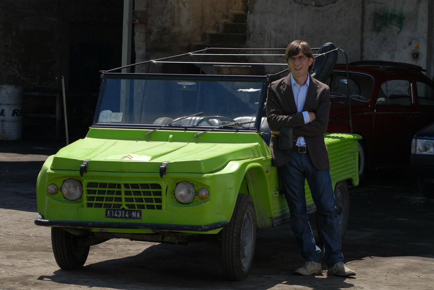 Il primo è l’auto guidata dall’attore, lo stesso esemplare posseduto da Siani: una Citroën Méhari verde, detta “spiaggina”, ideata negli anni 60 sullo slancio dell’età dell’oro della villeggiatura, e simile alle vetture che oggi si vedono sui campi da golf. Tra le mani del protagonista sembra un’utopia del tempo libero, uno scheletro colorato che attraversa quartieri difficili.