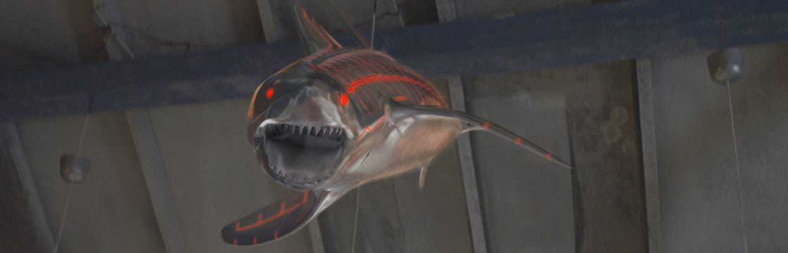 Uno strano satellite (illuminato come un albero di Natale) in caduta libera da un'astronave aliena, precipita nel bel mezzo dell'Oceano, finendo tra le fauci di uno squalo. L'animale non solo si trasforma in robot, ma può emergere dal sottosuolo comparendo all'interno di un centro commerciale di Seattle. Trish (Alexis Peterman), una eccentrica giornalista (del meteo!)…