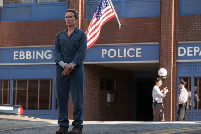 Enorme la performance di Frances McDormand, sicuramente la prova migliore della sua vita, persino superiore a quella nel mitico Fargo dove era la sua semplicità a farla da padrona in un racconto bislacco. Qui non c’è nulla di semplice e ordinario: da un viso tirato e duro come la pietra occhiatacce che fulminano, piccole smorfie, alzate di sopracciglia, frasi sparate come colpi di fucile, abbigliamento che non ha nulla di femminile (una tuta blu da operaia che la dice lunga su come ha tirato avanti nella vita senza aspettarsi nulla da nessuno), postura e andatura che non danno scampo a chi incontra. Come un novello “cavaliere pallido” e senza nome, anche se quella strana camminata ricorda altri mitici attori del western (John Wayne?). Una Frances McDormand spettacolare che si ricorderà a lungo, anche perché – e qui si arriva all’altra protagonista assoluta del film – la magistrale sceneggiatura scritta dallo stesso regista sembra (ed è) cucita addosso all’attrice, pensata per lei e per nessun’altra donna al mondo. Qualunque altra attrice ne avrebbe fatto una figura diversa ma mai avrebbe potuto eguagliarla. Una sceneggiatura, quindi, che strega come un’opera d’arte, che evita i rischiosi tranelli di ovvietà in una storia che poteva fornire pericolose buche in cui cadere, che fa ridere e spaventare, che a volte rallenta giudiziosamente e altre volte pare porti dritto all’inferno. Un encomio meritato per Martin McDonagh.