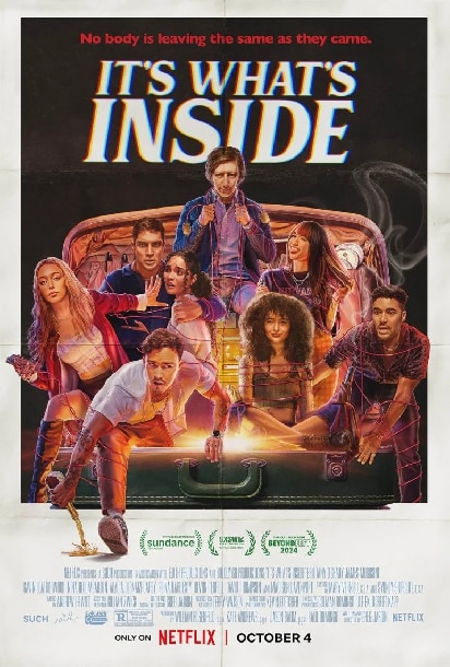 Intrattiene più che respingere funzionicchiando senza troppo reiterarsi a vuoto raggiungendo esponenzialmente una sterile saturazione frattale di sé “Its Whats Inside”, il rompicapo scritto, diretto e montato da Greg Jardin, suo esordio nel lungometraggio e praticamente una variante in sottrazione del (vedi note) Teorema di Futurama (però sia chiaro: non siamo dalle parti, a prescindere dal budget, né di Christopher Nolan né di quel pazzerello di Shane Carruth, pace alla terrestre anima sua e di chi volente o nolente gli è ancora vicino o lontano nonostante tutto in entrambi i casi) e al contempo una ripresa di un certo “mood”, a un quarto di secolo di distanza, che caratterizza opere quali “I Know What You Did Last Summer” e “Final Destination”, costruendo il tutto però su di un substrato più “adulto”: trentenni (a vario titolo e attraverso differenti gradazioni e sfumature) disperati (del cui destino lo spettatore se ne stracatafotte amabilmente), quasi niente giusti, se non del tutto sbagliati (scelte morali discutibili in un contesto etico fallibile), per parafrasare il poeta invertendo il valore e l’ordine degli addendi/fattori senza che il risultato cambi.