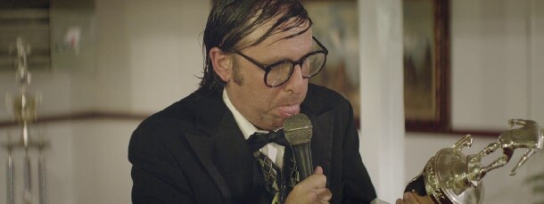 Qui il protagonista (Gregg Turkington) è un comico dalla postura da depresso, che fa più ridere per il suo vestirsi a pantaloni laschi, gli occhialoni da cui non si separa neppure quando rotti, il rituale del gel nei capelli a riporto, la voce ingolfata dai bicchieri di alcol che si porta in scena, quel ripetere ossessivamente le sue domande, che per il contenuto delle sue penose e volgari freddure (ma viene da chiedersi se siano peggio queste ultime o le banalità del clown che sistematicamente lo precede in molti degli spettacoli itineranti). E il suo rapporto col pubblico pare quasi di disprezzo, con una paranoia per lo stesso che si manifesta spesso in odio viscerale, al punto che stai là a domandarti come sia possibile che qualcuno ingaggi un personaggio simile. Il suo dramma probabilmente è da ricercare nelle telefonate a una figlia morta o da cui si è diviso ed il suo osservare tutto ciò che accade fuori dal palco con un insolito mutismo è una peculiare scelta registica, secondo cui l’unica risposta possibile di fronte a certi comportamenti umani (difficile stabilirne il confine tra reale e surreale) è stare zitti.