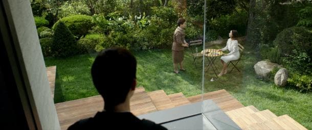 Con una inquadratura magistrale dall'interno della casa che passa sopra alla testa di uno dei protagonisti e attraversa la grande vetrata che si affaccia su un giardino, assistiamo alla dimostrazione che i ricchi non brillano per intelligenza o comunque hanno dei problemi di concentrazione: la domestica sveglia con un finto schiaffo la giovane moglie e madre vittima di un attacco di narcolessia.