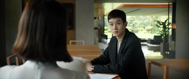Una volta svegliata dal suo sonno la giovane e benestante mammina coreana finge di testare l'aspirante professorino ma lo sguardo è vacuo e la frase in inglese con cui vorrebbe stigmatizzare la propria superiorità è la sintesi perfetta dell'arrivismo più patetico di una certa classe sociale.