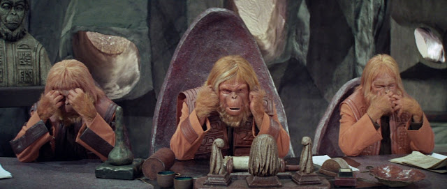Il darwinismo alla rovescia del film diventa così una formidabile allegoria della società moderna e funziona in quanto noi spettatori ci troviamo vittime di questa paradossale situazione, rivelandoci di come l’uomo (o scimmia. In fondo che differenza fa?) tenda a commettere sempre gli stessi errori (e a ripetere sempre le stesse violenze e crudeltà pur di conservare il potere) e, con la scena finale, di come la storia sia ciclica in quanto incapaci di imparare dai nostri stessi errori, arrivando anche a superare i riferimenti esplici di quel periodo in un ambiguo gioco di specchi tra la realtà del ‘68 e il mondo governato dalle scimmie.