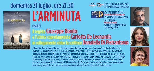L'ultima sera, quella a cui ho potuto partecipare, veniva proiettato L'Arminuta con la presenza in "sala" del regista Giuseppe Bonito della coprotagonista Carlotta De leonardis e un videosaluto della scrittrice Donatella Di Pietrantonio. Non vi parlerò io del film ci sono già discrete recensioni nel sito, e quindi lascio la parola direttamente alla loro disponibilità al termine della proiezione con il mio video della conclusione.